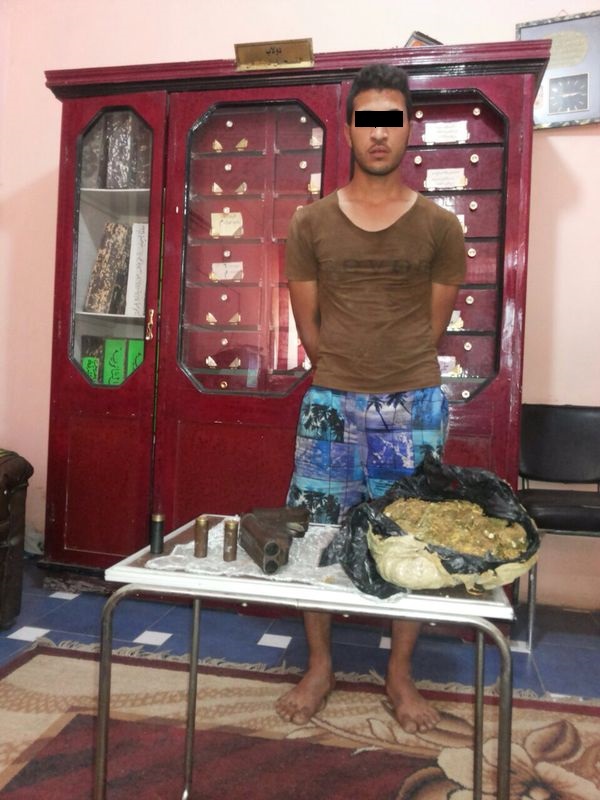 تمكن رجال مباحث مركز شرطة القنطرة غرب بالإسماعيلية من القاء القبض علي عاطل مطلوب في 3 جنايات وبحوزته سلاح نارى وعدد من الطلقات وكمية من نبات البانجو المخدر . كان اللواء مصطفي سلامة مدير أمن الإسماعيلية تلقي إخطاراً من الرائد عمرو الجوهري رئيس مباحث مركز شرطة القنطرة غرب يفيد بضبط المتهم ” باسم . أ . ج 22 عاماً عاطل مقيم نمرة 4 ــ دائرة مركز القنطرة غرب مطلوب ضبطه وإحضاره فى القضايا الآتية :445 /2014 جنايات مركز القنطرة غرب بتهمة ” سرقة بالإكراه ” 26 /2014 جنايات مركز القنطرة غرب بتهمة ” سرقة بالإكراه ” 529 /2014 جنايات مركز القنطرة غرب بتهمة ” سرقة بالإكراه ” وبحوزته سلاح نارى ( بندقية خرطوش بروحين ) محلى الصنع وعـ2ـدد طلقة من ذات العيار ، كذا كمية من نبات البانجو المخدر وزنت حوالى ( 2 كيلو جرام ) وإعترف بحيازته للمواد المخدرة بقصد الإتجار والسلاح للدفاع . وعلي الفور تم التحفظ علي المضبوطات والمتهم وتحرر محضر بالواقعة وجاري عرضه علي النيابة العامة للتحقيق .