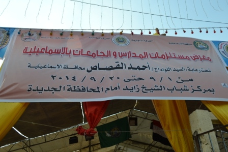 فى اطار استعدادات محافظة الإسماعيلية لاستقبال العام الدراسى الجديد قام اللواء أحمد بهاء الدين القصاص محافظ الاسماعيلية بافتتاح المعرض السنوى للسلع والمستلزمات والأدوات المدرسية الذى أقيم بمركز شباب الشيخ زايد بحى ثالث الاسماعيلية ونظمته مديرية التموين والتجارة الداخلية بالتعاون مع المحافظة والغرفة التجارية وبمشاركة عدد عشرون شركة وعارض ويضم المعرض كافة أنواع الملابس والزى المدرسى لجميع المراحل التعليمية والأحذية والشنط وجميع أصناف الادوات الكتابية ومستلزمات العملية التعليمية والتى يتم بيعها بأسعر مخفضة للجمهور ومنافسة لأسعار السوق المحلى وتخفيضات تتراوح من 10 الى 40% تقريبا .