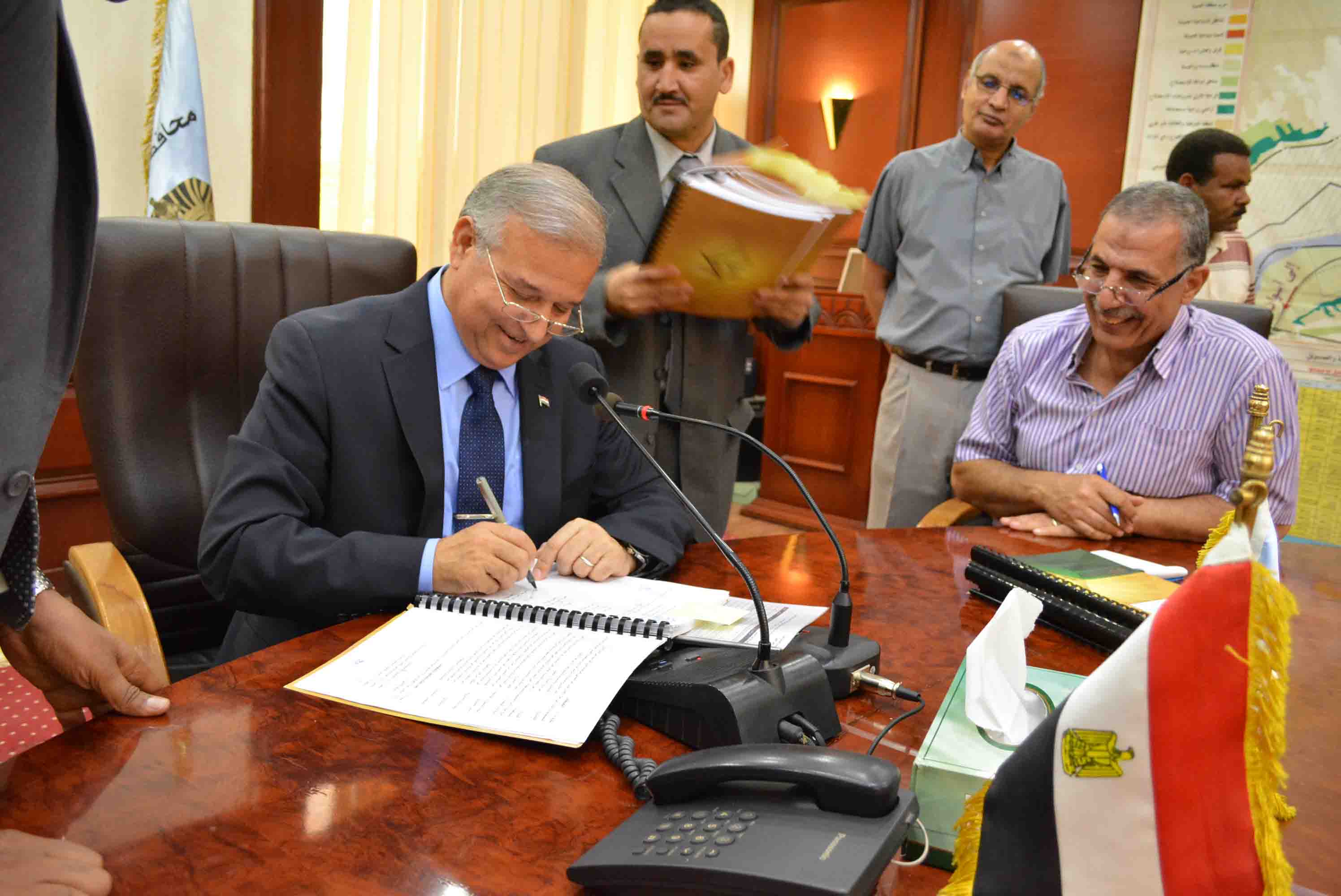 وقع اللواء طارق سعد الدين محافظ الأقصر عقود تنفيذ مشروعات الصندوق الاجتماعي للتنمية بمحافظة الأقصر مع محمود العماري مدير الصندوق الاجتماعي للتنمية بالمحافظة.