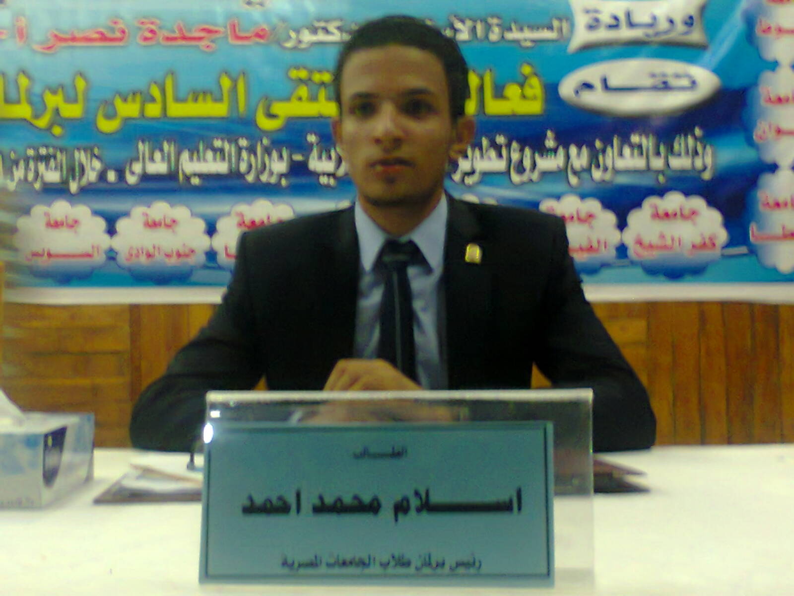 جاء ذلك خلال تكريمه بفوزه بمنصب رئيس برلمان طلاب الجامعات المصرية ضمن فعاليات الملتقى القمى السادس لبرلمان طلاب الجامعاتالمصرية بجامعة المنصورة بالتعاون مع مشروع تطوير الأنشطة الطلابية بوزارة التعليم العالي , وذلك بحضور الدكتور السيد عبد الخالق وزير التعليم العالي , والدكتورة ماجدة نصر القائم بعمل رئيس جامعة المنصورة ونخبة من القمم العلمية والتخصصية المتميزة من مختلف الجامعات المصرية .