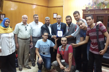 وقام الطلاب باهداء درع المركز الأول للدكتور سليمان محمد مصطفي نائب رئيس الجامعة لشئون التعليم والطلاب .