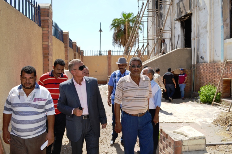 كما تفقد تطوير المبنى القديم للمحافظة وما يتم من أعمال دهانات و ترميم للمكتبة العامة التي تم حرقها منذ عام خلال أعمال الشغب و المظاهرات في 14 أغسطس 2013.