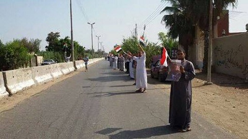 بالصور … اخوان المنوفية ينظمون سلسلتان بشريتان بطريق “الباجور القاهره”