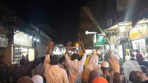 وقد بدأت المسيرة بالتكبير والتهليل استعدادا لوقفة عرفات ثم ردد المشاركون فيها هتافات منددة بالجيش والشرطة و غلاء الأسعار و لقيت المسيرة تفاعل من المارة وأصحاب المحلات .