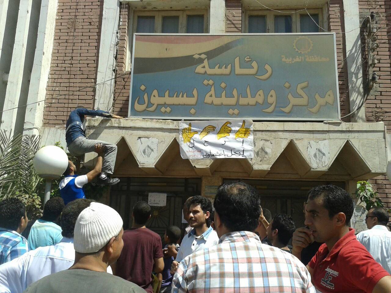 أغلق للمرة الثالثة أهالي مركز ومدينة «بسيون» بالاشتراك مع القوى الثورية والحركات السياسية «مركز المدينة» بالجنازير مانعين «رئيس المدينة» محمود عمارة ونائبه الجديد جبر العشماوي من الدخول احتجاجا على تعيين الأخير« الإخواني» نائبا لرئيس مجلس المدينة.