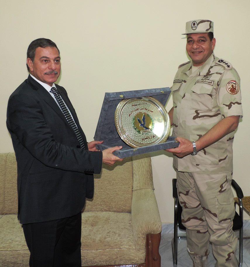 و فى ختام لقاء مدير الأمن و القيادات الأمنية بقائد القطاع العسكرى ، أهدى مدير الأمن قائد القطاع العسكرى درع مديرية أمن البحر الأحمر إعتزازا وتقديرا بدور المؤسسة العسكرية فى إنتصارات أكتوبر المجيدة وعلى مدار التاريخ الوطنى .