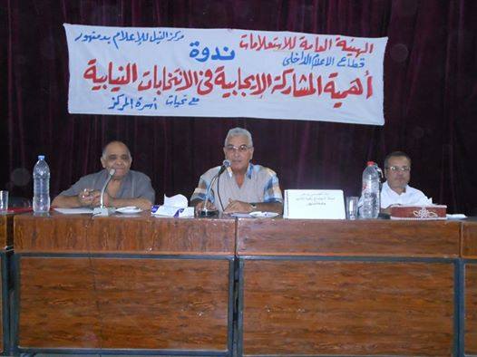 نظم مركز النيل للإعلام بدمنهور، برئاسة فايزة رزق، مدير مجمع إعلام دمنهور ندوة إعلامية تحت عنوان ( أهمية المشاركة الإيجابية في الانتخابات النيابية ).