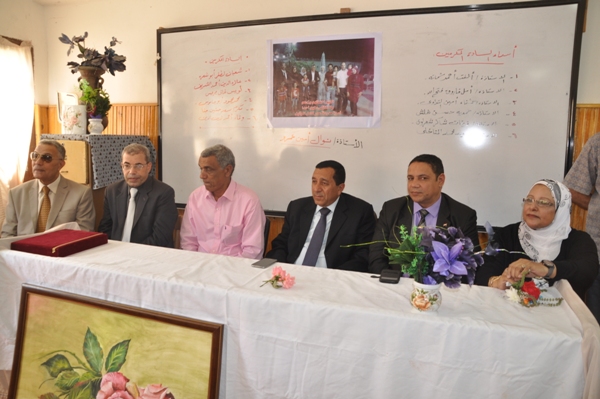 حيث قام المحافظ بتكريم وإهداء شهادات التقدير لكل من الأساتذة ( نوال أمين عمرو مديرة المدرسة – الفت احمد شحاتة – أمل فاروق فتح الله – ثناء أمين التداوى – حمدية حسن هلش – زينات شاكر شعراوي – سعيد محمد المناخلى – شعبان لطفي أبو شعرة – علاء الدين احمد الشريف – لويس غالى جرجس – محمد محمود أبو جاموس – مكرم سعد حنا – وفاء احمد زين الدين ) من أعضاء هيئة التدريس بالمدرسة لبلوغهم سن المعاش خلال شهر أكتوبر الجاري