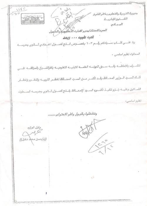 وافق المستشار محمد عزت عجوة علي طلب لحزب النور بقرية السحايت التابعة لمركز الحامول بمحافظة كفر الشيخ بفتح فصول ثانوي عام ملحقة بمدرسة السحايت للتعليم الأساسي.