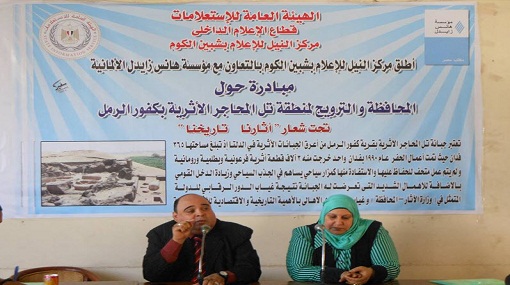 أطلق مركز النيل للاعلام بشبين الكوم بالتعاون مع مؤسسة هانس زايدل الالمانية مبادرة للمحافظة و الترويج لمنطقة تل المحاجر الأثرية بكفور الرمل و فى ضوء هذه المبادرة نظم مركز النيل تحت اشراف الاستاذه ، أمينة التلاوى اليوم الخميس ، دورة تدريبية عن مهارات التفاوض و القيادة .