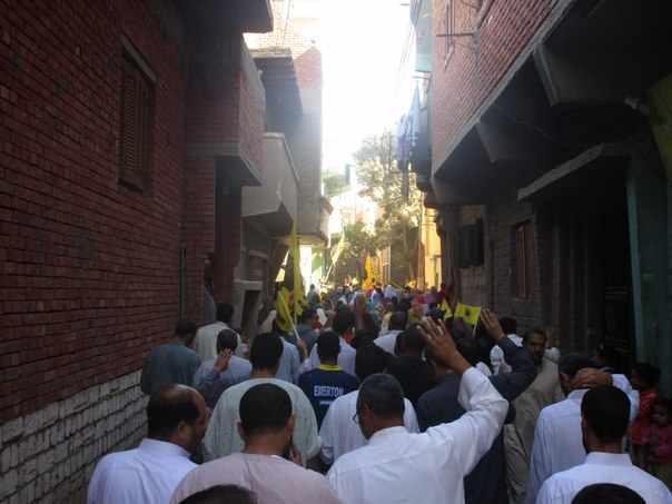 جابت المسيرة شوارع القرية، مشاركة العشرات من أنصار الجماعة الإرهابية ومؤيدي الرئيس المعزول بالقرية، رافعين لافتات تحمل شعار رابعة، وسط هتافات مناهضة لقوات الجيش والشرطة، كان من أبرزها «يسقط يسقط حكم العسكر».