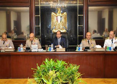 وفى إطار متابعة توصيات مجلس الدفاع الوطني المنعقد بالأمس والتي أقرها رئيس الجمهورية بالقرار الجمهورى رقم (366 ) بتاريخ 24 / 10 / 2014 وتم دراسة الخطوات التنفيذية لتفعيل تلك التوصيات ولا سيما إعلان حالة الطوارئ بالمناطق المشار إليها فى القرار الجمهوري سالف الذكر .