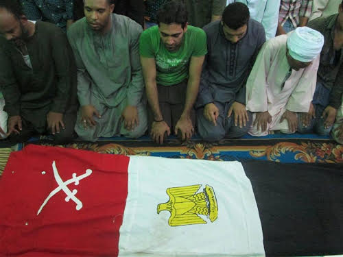 ورغم حالة الهياج التي أصابت الجميع بسبب إزدياد مشيعي الجنازة والحالة التي سيطرت عليهم من الحزن والّاّسي ، وصل الجثمان بعد معاناة إلي مسجد السيد يوسف بمنطقة الكرنك بالاقصر كي يتم أداء صلاه الجنازة عليه ، وفور أداء الصلاة علية ، طلب إمام المسجد ومدير أمن الاقصر الجميع التمسك والصبر حتي يتم دفن الجثمان والخروج به من داخل المسجد ، وأستعانت أجهة الشرطة بقوات إضافية لتأمين الجثمان .