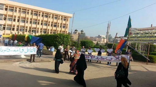 نظم ما يسمى بـ “طلاب ضد الانقلاب” بكلية الهندسة بمنوف بجامعة المنوفية ، وقفة صامتة اليوم الأثنين ، للتنديد بالأنتهاكات الحادثة تجاه طلاب الجامعات المصرية ، والتى اصبحت مسلسلاً مكرراً تمارسة قوات الداخلية “على حد قولهم” .
