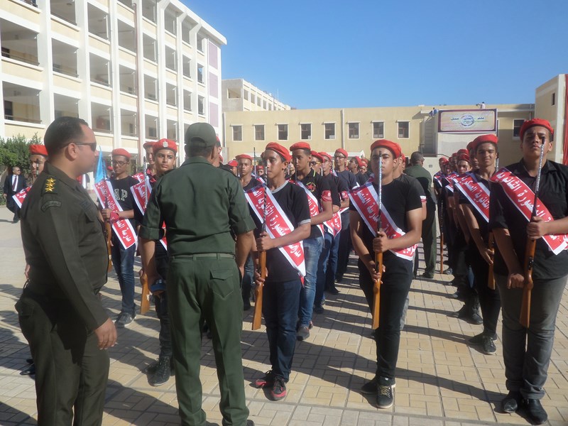 وإنطلق العرض الطلابى بعرض رياضى “كمال أجسام، تمارين اللياقة، جودو، كاراتيه”، وعرض عسكرى “طابور العرض، العرض الصامت، عرض الرماية”.