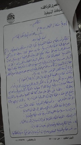 قام العشرات من حكام منطقة المنوفية برفع تظلم جماعى الى الاستاذ جمال علام رئيس الاتحاد المصرى لكرة القدم ، يشتكون من الاضطهاد المستمر لهم “على حد قولهم” ، وطالبوا بعودة الحكم الدولى احمد ساهر الى القائمة الدولية ، حتى يوقفوا اضرابهم عن العمل .