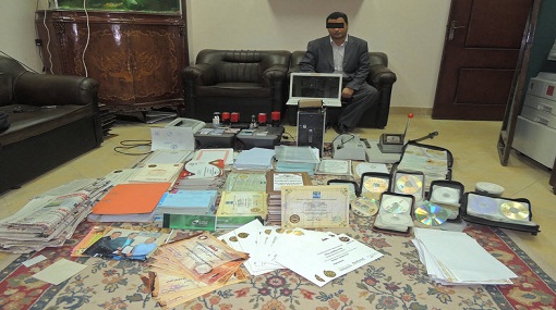 وتم ضبط المذكورين بمحل اقامتهم اليوم الثلاثاء ، وبتفتيش محل الأقامة والنقابه ، عثرت قوات الأمن على (1) 3 طابعة ليزر ماركة HB (2) عدد من الشهادات المزوره والممهوره بأختام مقلده (3) دفاتر ايصالات استلام نقدية (4) ماكينة تغليف ومقص اوراق وماكينة كبس حرارى (5) 7 أختام وأكلاشيهات مقلده . (6) العديد من طلبات الحصول على وحدات سكنية (7) جهاز لاب توب ماركة توشيبا ويحتوى على الاختام والاكلاشيهات الحكومية وغير الحكومية ، بالأضافه الى خطة التحرك لجذب المواطنين وجمع الأموال ، بقصد التربح .