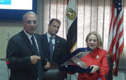 محافظ القليوبية يشارك السفيرة الامريكية بافتتاح مركز تميز بالغرفة التجارية ببنها