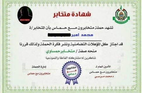 بالصور … الداخلية تلقي القبض على مصريين يحملان شهادة تخابر مع حماس 13 نوفمبر، 2014 183 زيارة اعلنت وزارة الداخليه عن القاء القبض على مصريين يحملان “شهادة تخابر مع حماس”. يذكر أن هذه الشهادات نشرها نشطاء ضمن حملة إلكترونية على الإنترنت عقب اتهام الرئيس المعزول محمد مرسي بالتخابر مع حماس.