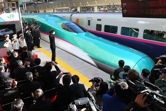 4. قطار الرصاصة فى اليابان، يسير عند سرعة 320 كم بالساعة بشكل وسطى، ويعتمد على تقنية الوسادة الهوائية التى تترك فاصلا صغيرا جدا بين القطار والسكة، اعتمادا على الحقول الكهرومغناطيسية الناشئة بين السكة والقطار