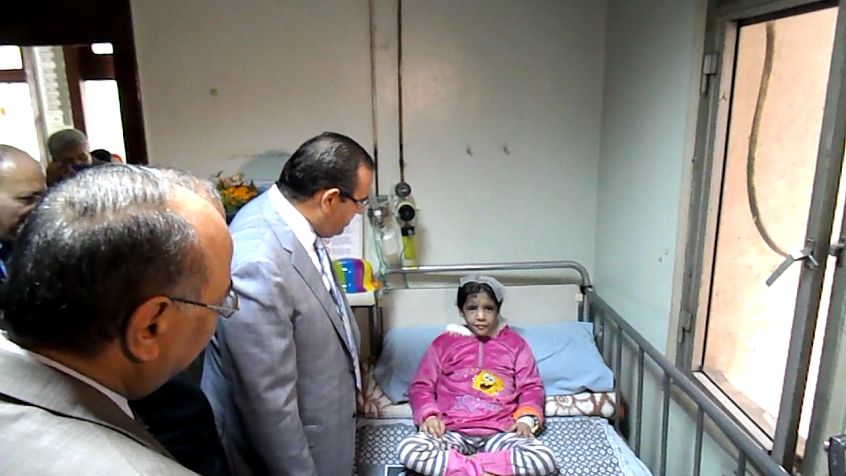 قام الدكتور محمد القناوى، اليوم الخميس، بزيارة الطفلة سارة محمد يوسف برطع والتي يبلغ عمرها سبع سنوات ونصف بمستشفى الأطفال يرافقه الدكتور “محمد الحديدي” القائم بعمل عميد كلية الطب والدكتور احمد منصور مدير عام المستشفى وطاقم طبي متخصص للاطمئنان على الحالة الصحية للطفلة بعد استقرار حالتها الصحية .