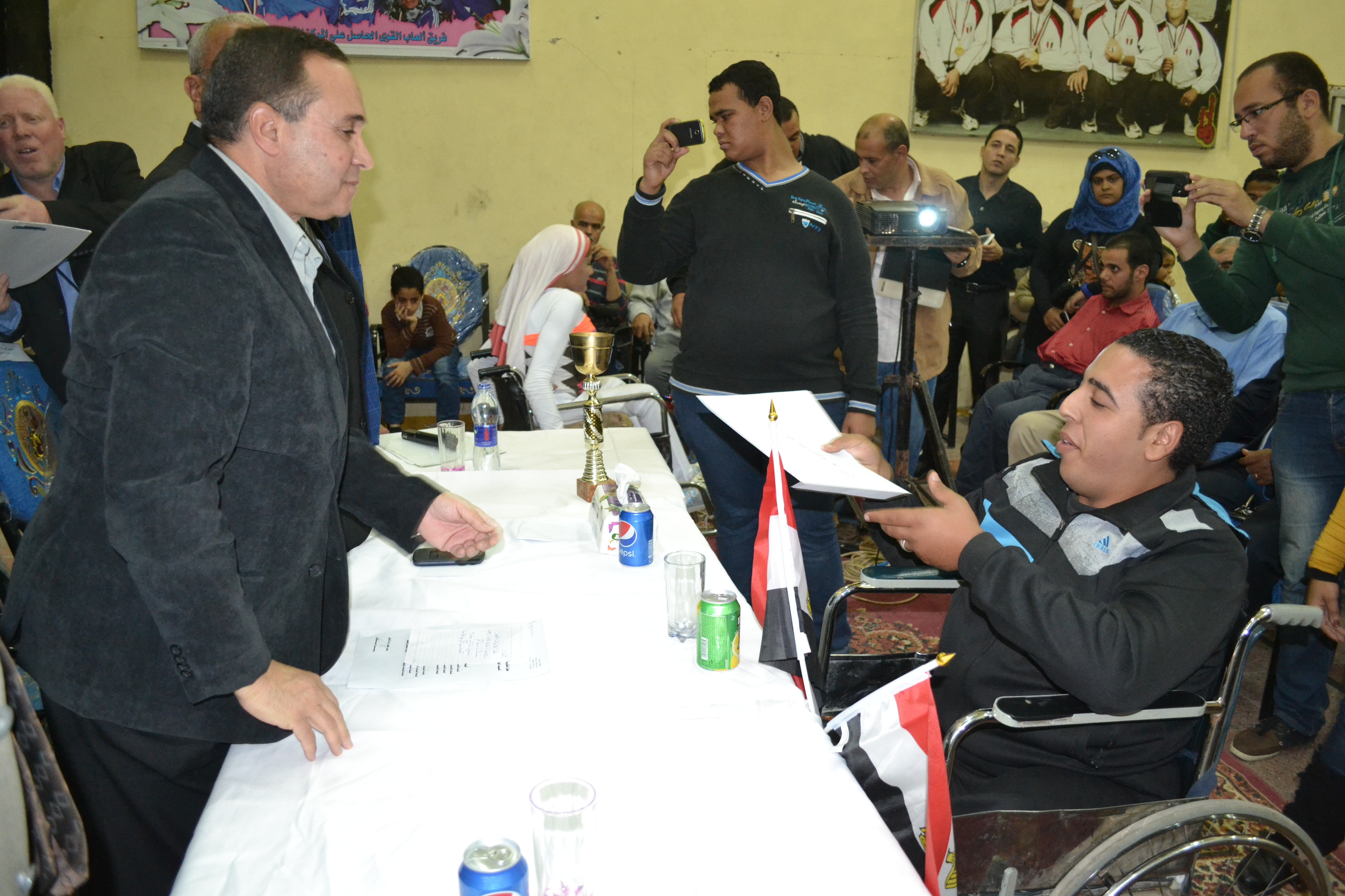 شهد اللواء أحمد بهاء الدين القصاص محافظ الاسماعيلية يرافقه المهندس أبو السعود جهلان السكرتير العام لمحافظة الاسماعيلية والدكتور فؤاد عبد الباقى مدير عام مديرية الشباب والرياضة بالمحافظة والمهندس محمد الصافى رئيس حى ثالث الاسماعيلية الاحتفالية السنوية الكبيرة لتكريم أبناء الاسماعيلية من أعضاء نادى العزيمة للمعاقين المتفوقين رياضيا والحاصلين على المراكز الأولى والمتقدمة فى البطولات الرياضية العالمية والمحلية فى مختلف الألعاب الرياضية والتى نظمها النادى بالتعاون والتنسيق مع مديرية الشباب والرياضة وتحت اشراف الكابتن نبيل اللاوى رئيس مجلس ادارة نادى العزيمة للمعاقين بالاسماعيلية .