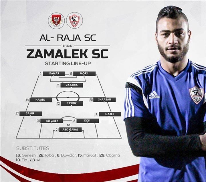 جاء تشيكل نادي الزمالك اليوم لمباراة الرجاء في الدوري العام علي النحو التالي :