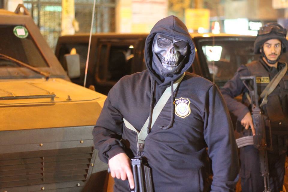 اليوم في مشهد غريب من نوعة ضابط شرطة برتبة رائد في شارع فيصل، مرتديًا قناع الرأس، خلال استعداداته للتصدي لمظاهرات 28 نوفمبر، التي دعت إليها الجبهة السلفية تحت اسم انتفاضة الشباب المسلم.