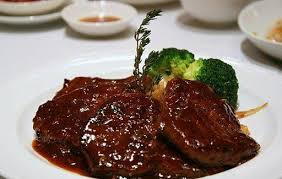 – نحمر قطع الاستيك علي طاسة جريل ساخنة بها قليل من الزيت من علي الجانبين كل جانب ل10 دقائق تقريبا ثم ترفع وتغطى بفويل ثم نقوم بتشويح البصل مكانها جيدا حتي يغمق لونه ثم مع الثوم والزنجبيل الطازج والمشروم ونقليهم جيدا جدا ثم نضيف الصوص باقي تتبيلة اللحم ونتركه ليتسبك.