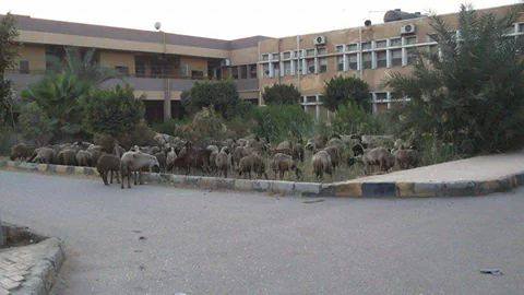 بالصور… “الخرفان” ترتع داخل مستشفي كفر شكر و”المرضي” يصرخون خارجها