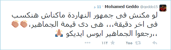 جدو: رجعو الجمهور أبوس إيديكو 6 ديسمبر، 2014 126 زيارةكتب جدو علي تويتر الخاص بة ، لولا الجمهور اليوم ماكان الأهلي إنتصر في أخر الدقايق ، رجعو الجمهور أبوس إيديكو.جدير بالذكر ، بأن محمد ناجي جدو ، كان يتابع المباراة كمشجع اهلاوي لإصابتة.
