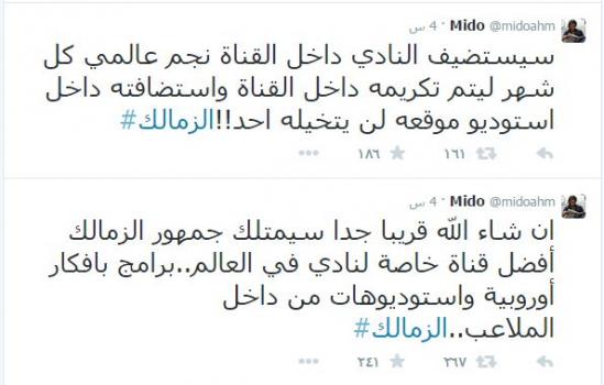 وكتب ميدو عبر حسابه الشخصي على موقع التواصل الاجتماعي “تويتر” أن الأفكار التي ستنطلق بها القنوات أوروبية، وستكون هناك استوديهات من داخل الملاعب.