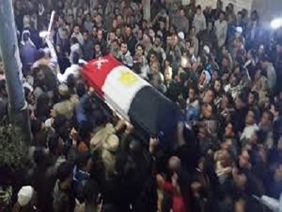 وردد المشيعون هتافات “لا إله إلا الله الشهيد حبيب الله”، “الإرهاب أعداء الله”، “الإخوان هم الإرهاب”،” مكملين لآخر نقطة في دمنا”.