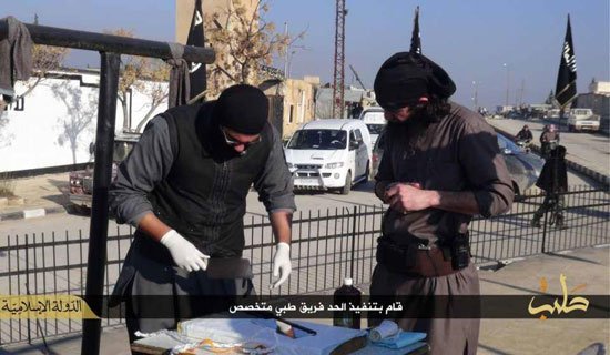 “داعش” تقطع يد مواطن بسوريا لاتهامه بالسرقة 27 ديسمبر، 2014 283 زيارة نشرت إحدى الصفحات التابعة لتنظيم داعش الإرهابى، عبر مواقع التواصل الاجتماعى تويتر، صورًا أثناء قيام عناصر التظيم الإرهابى بقطع يد مواطن من حلب لاتهامه بالسرقة. . وذلك فى وضح النهار وأمام جمع من المواطنين.