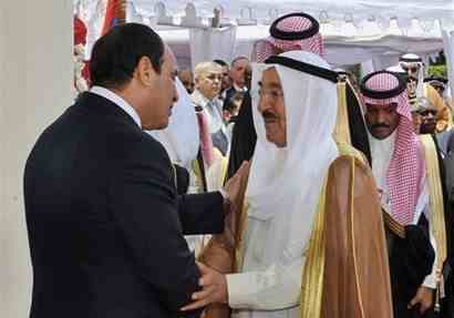 وصف الرئيس عبدالفتاح السيسي امير الكويت الشيخ صباح الأحمد بالرجل الحكيم ذو البصيرة ،وقال لرؤساء تحرير الصحف الكويتية الذين إلتقى بهم في الكويت قبيل مغادرته ظهر اليوم “أهنيكم بسمو الأمير صاحب الشخصية العظيمة الذي يتعامل مع كافة القضايا بحكمة وبصيرة خاصة وأن المنطقة العربية في أصعب أوقاتها .