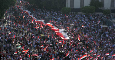 وتطلق عشرات السيارات- التى تجوب المنطقة وعلى متنها متظاهرون يحمل معظمهم أعلام مصر- آلات التنبيه، تعبيرا عن مطالبتهم برحيل الرئيس مرسى.