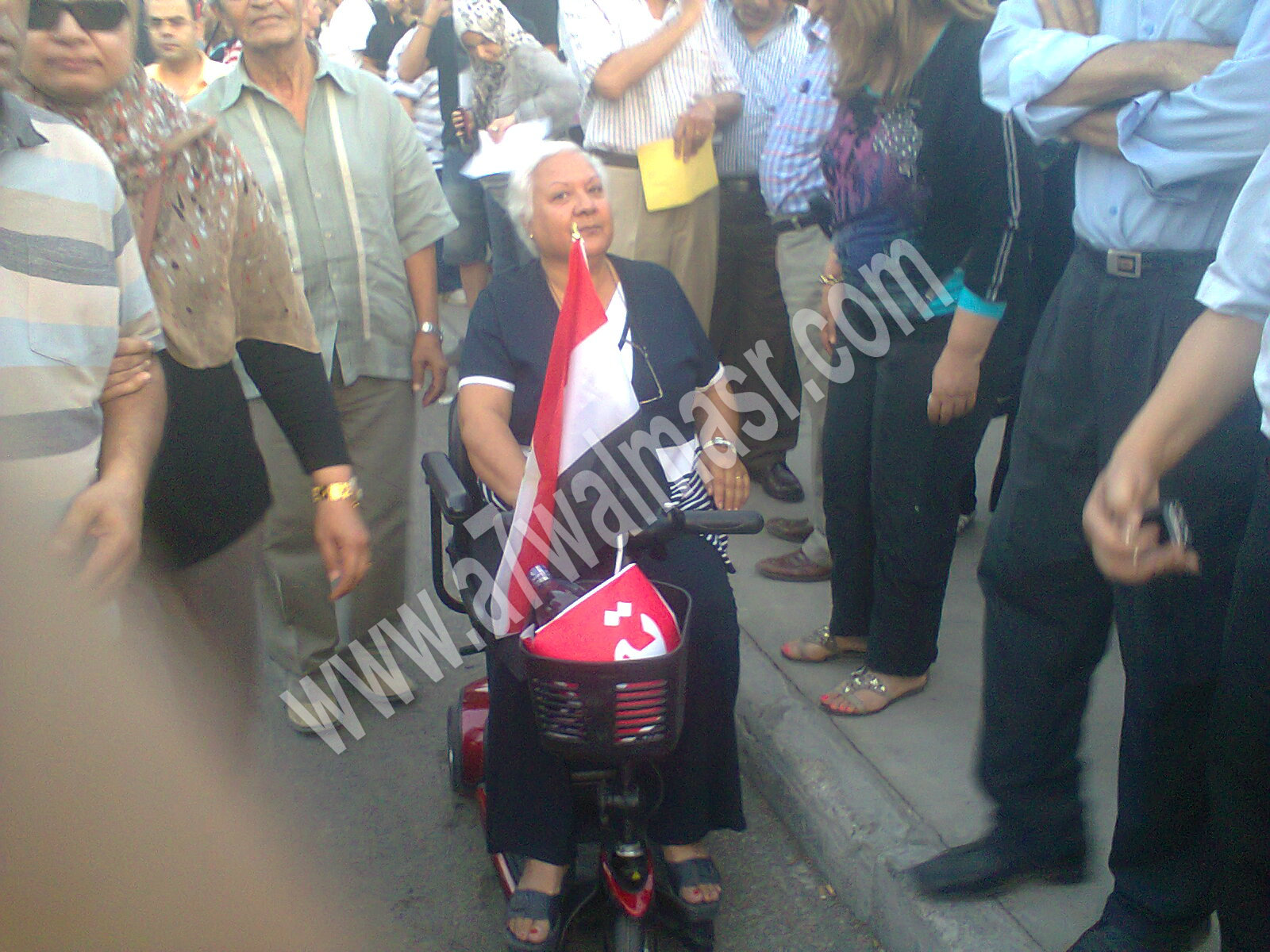 فى اثناء متابعة احوال مصر لاجواء المظاهرات السلمية المتجه الى قصر الاتحادية جذب الانتباه سيدة عجوز لم يمنعها عدم قدرتها على الحركه والمشى على اقدامها فى المسيرة من الخروج والمشاركه بكرسى متحرك .