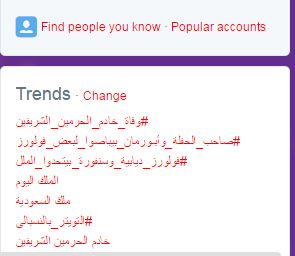 هشتاج وفاة خادم الحرمين يتصدر تويتر على مستوى العالم