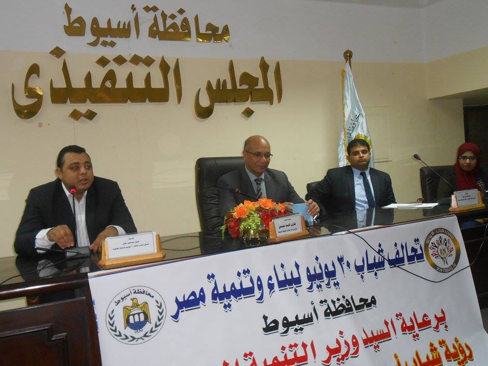 استمع مساء امس الجمعة تحالف شباب 30 يونيو – بناء وتنمية مصر الى رؤية شباب أسيوط حول تنمية مصر عامة والمحافظة على وجة الخصوص وذلك تحت رعاية اللواء عادل لبيب وزير التنمية المحلية واللواء ابراهيم حماد محافظ أسيوط وذلك بحضور المهندس فكرى ثابت السكرتير عام المساعد وعصام الامير المنسق الادارى للتحالف على مستوى الجمهورية .