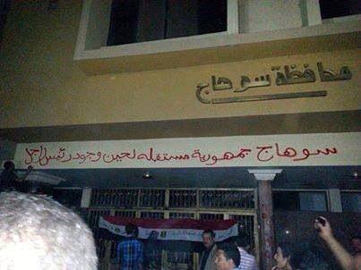 سوهاج تشهد اكبر تظاهره امام مبني المحافظه احتفالا باستقالة المحافظ وتنديدا بحكم الاخوان 2 يوليو، 2013 189 زيارة شهدت محافظة سوهاج اليوم اكبر مسيره ضد حكم المرشد ومرسى وللاحتفال باستقالة محافظ سوهاج الذى ينتمى للاخوان واعلن المتظاهرين غلق مبنى المحافظه لحين تعين رائيس جديد.
