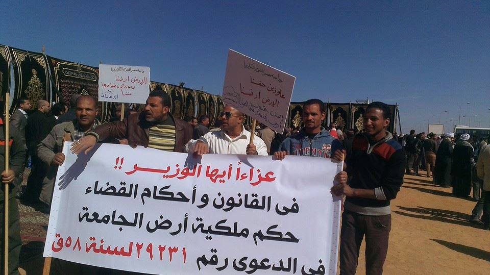 نظمت جامعة مصر للعلوم والتكنولوجيا وقفة اعتراضيه وذلك اعتراضا على قرار وزير الاسكان الاسبق بالغاء تخصيص قطعة ارض كانت من المفترض ان يتم تشييدها هذا العام لتشمل توسعات جديده للجامعه,