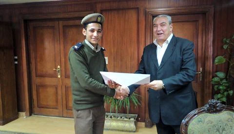 قام السيد اللواء طـارق نصر مساعد وزير الداخلية – مدير أمن أسيوط اليوم بتكريم الملازم ” حاتم سيد عقيلى عبد الكريم ” الضابط بمركز منفلوط , و ذلك لجهوده المتميزة و أدائه الإيجابى و تمكنه من ضبط مواطن و بحوزته 3 طرب حشيش بقصد الإتجار و مبالغ متحصله من بيع المواد المخدرة أثناء رئاسته للقوات المعينه بخدمة كمين منفلوط على الطريق الصحراوى الغربى .
