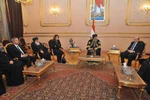 وقدم الوزراء الثلاثة تعازيهم لقداسة البابا في شهداء مصر الذين تم ذبحهم على يد تنظيم «داعش» الإرهابى فى ليبيا.