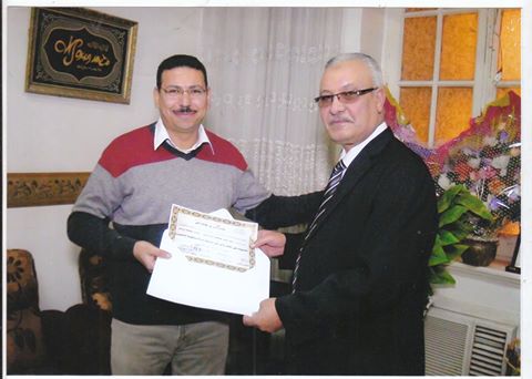 و ذلك لفوزه بالمركز الأول فى مسابقة المعلم المثالى على مستوى إدارة منفلوط التعليمية , فى حضور ” عزت حسن على ” مدير عام الإدارة .