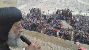احتشد الآلاف من أقباط إيبارشية ملوي بدير البتول بقرية أبوحنس بملوي للقاء قداسة البابا تواضروس الذي يزور الدير حاليًا.