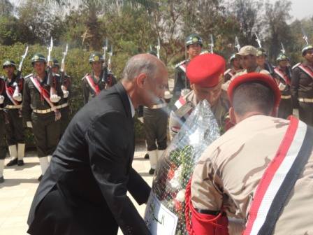 و قام مدير الأمن بوضع إكليل من الزهور على النصب التذكارى لشهداء القوات المسلحة نيابةً عن اللواء ” مجدى عبد الغفار ” وزير الداخلية , حيث قُرأت فاتحة الكتاب ترحُمً على أرواح الشهداء الطاهرة ، و عزفت الموسيقى العسكرية سلام الشهيد .