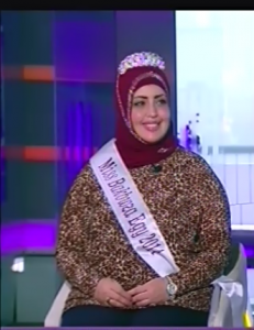 أشارت إلى أن دخولها مسابقة ملكة جمال البدينات كان تحديا صعبا وفرصة لتوصيل صوتها ورسالتها للمجتمع بأن الفتاة البدينة ليست أقل من أحد مما يكسبها ثقة زيادة في النفس ويحببها في شخصيتها،الذي يعود بوضع أفضل على السلوك المجتمعى.