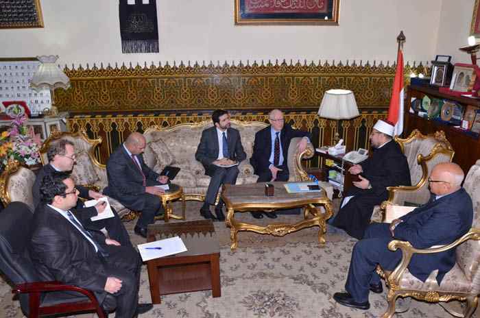 التقى معالي وزير الأوقاف الدكتور محمد مختار جمعة امس الأربعاء بكل من السيد جان كريستوف بوسيل مستشار وزير الخارجية الفرنسي للشؤون الدينية ، و السيد باسكال كورتاد رئيس المكتب المركزي للشئون الدينية بوزارة الداخلية الفرنسية ، في حضور سعادة السفير خالد عمران نائب مساعد وزير الخارجية لشئون الوافدين والتدريب والتعاون الفني والموضوعات الثقافية العامة والدينية ، حيث أكد وزير الأوقاف على دور مصر في مواجهة الإرهاب ، وعلى أهمية الاصطفاف العالمي والإنساني في مواجهته ، وأن هؤلاء الإرهابيين لا علاقة لهم بالإسلام ، إنما هم موظفون لخدمة أجندات سياسية ، غير أن هذا الإرهاب سيرتد حتى على من يصنعه أو يؤويه أو يتستر عليه ، فمع تضييق الخناق على الجماعات الإرهابية بمنطقة الشرق الأوسط سيرتد هؤلاء الإرهابيون إلى الدول التي صنعتهم وصدرتهم .