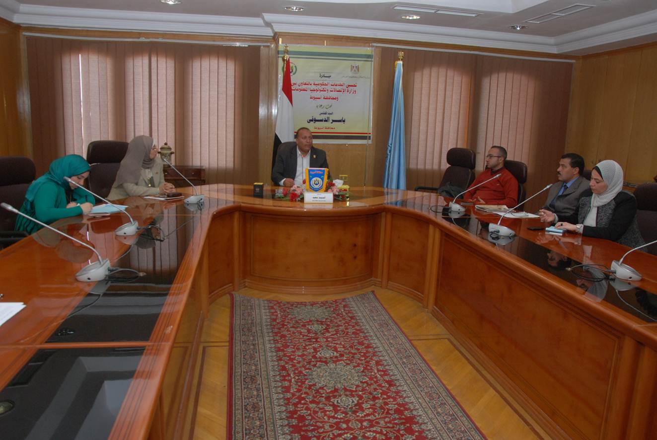 نظم مركز المعلومات ودعم اتخاذ القرار بمحافظة أسيوط لقاءاً تعريفياً عن مبادرة تحسين منظومة الخدمات الالكترونية بحضور ممثلى ادارة المشروعات بوزارة الاتصالات والذى أقيم تحت رعاية المهندس ياسر الدسوقى محافظ اسيوط بحضور ياسر مصطفى زهران مدير ادارة المشروعات العاجلة بوزارة الاتصالات ويحيى بدوى على وشريف عبد المنعم الديب منسقا المشروعات بالوزارة ، ورؤساء المراكز والاحياء ومديروا الادارات بالديوان العام وممثلوا مديريات الخدمات بالمحافظة .
