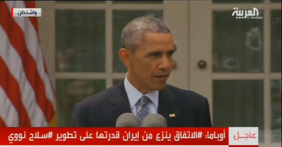 قال الرئيس الآمريكي باراك أوباما: “توصلنا إلى اتفاق جيد مع إيران بشأن برامجها النووية. مضيفا أن العقوبات أجبرت إيران على التفاوض حول برنامجها النووي, زأنها لن تستطيع بموجب الاتفاق الاستمرار في التخصيب.